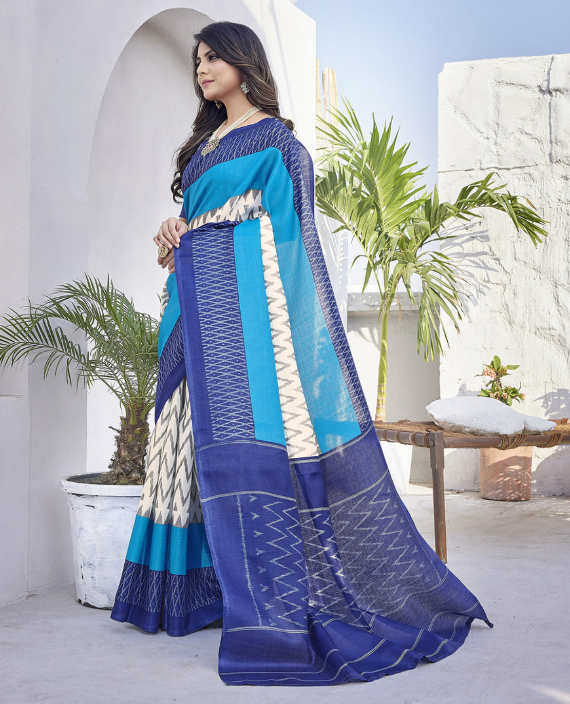 KJS BRINGS YOU THIS IKKAT PRINTED KHADI SILK BLENDED SAREE COMES WITH BLOSUE AMDE UP OF SUPERIOR QUALITY A MUST FOR ALL IKKAT PRINT SAREE LOVERS,ORIGINAL AND AUTHENCIATED BY KJS INC ONLY